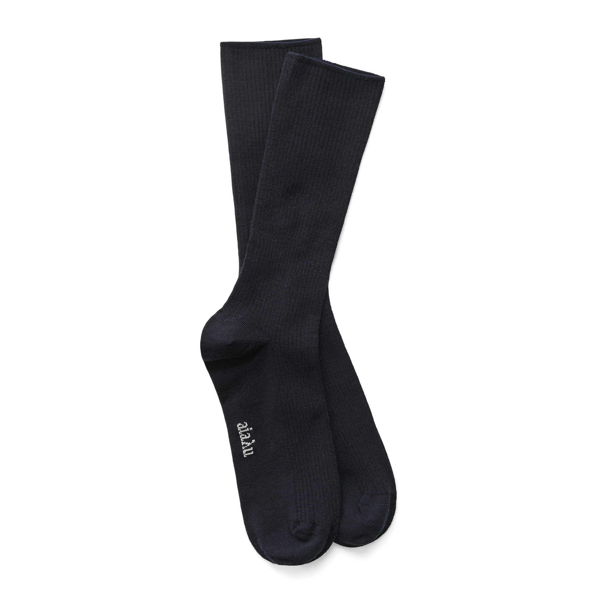 Eksklusive uldstrømper fra Aiayu, i en fleksibel ribstrik af 100% GOTS-certificeret merino-uld.